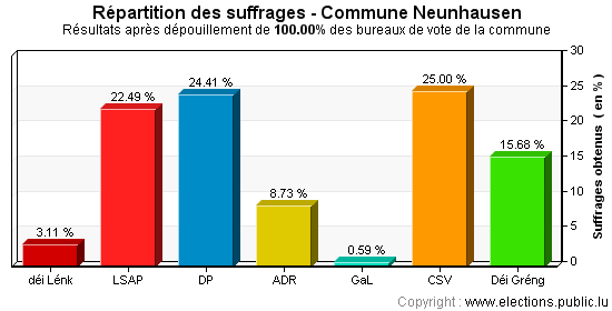 6 - CSV - Chrëschtlech Sozial Vollekspartei 96 73 169 25.00 %