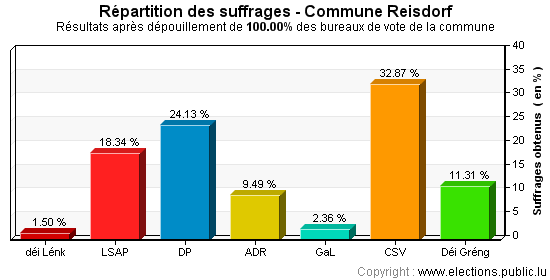 6 - CSV - Chrëschtlech Sozial Vollekspartei 324 289 613 32.87 %
